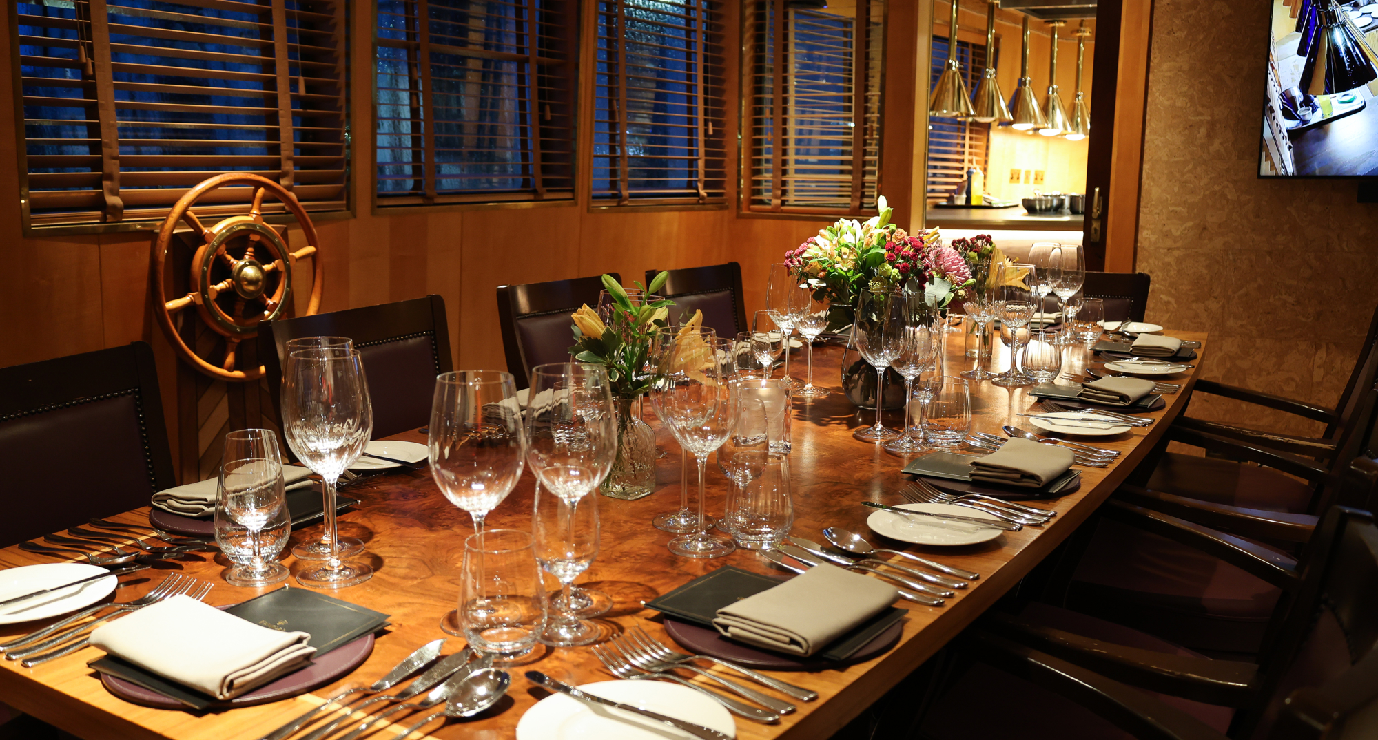 The Bridge, home to the original ship’s wheel, is located on our top deck, boasting ever-changing waterfront views. With access to the outside deck, where Fingal’s original telegraph is displayed. As the previous command centre of the ship - the nerve centre - The Bridge provides a stunning setting for dining, meetings to intimate weddings. An intimate space where up to 10 guests can dine.