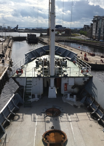 It was in December 2008 that Fingal's owner first approached The Royal Yacht Britannia Trust (the Trust) to enquire if it was interested in acquiring Windsor Castle. There then followed six years of negotiations before the ship was eventually acquired by the Trust in July 2014. After a dry dock survey in Falmouth, the ship was towed to Leith in August 2014 and the detailed designs began.