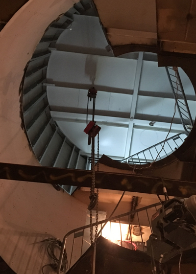 The top half of the funnel was then placed on top of The Lighthouse Restaurant & Bar deck to give the appearance that it was part of the original construction.