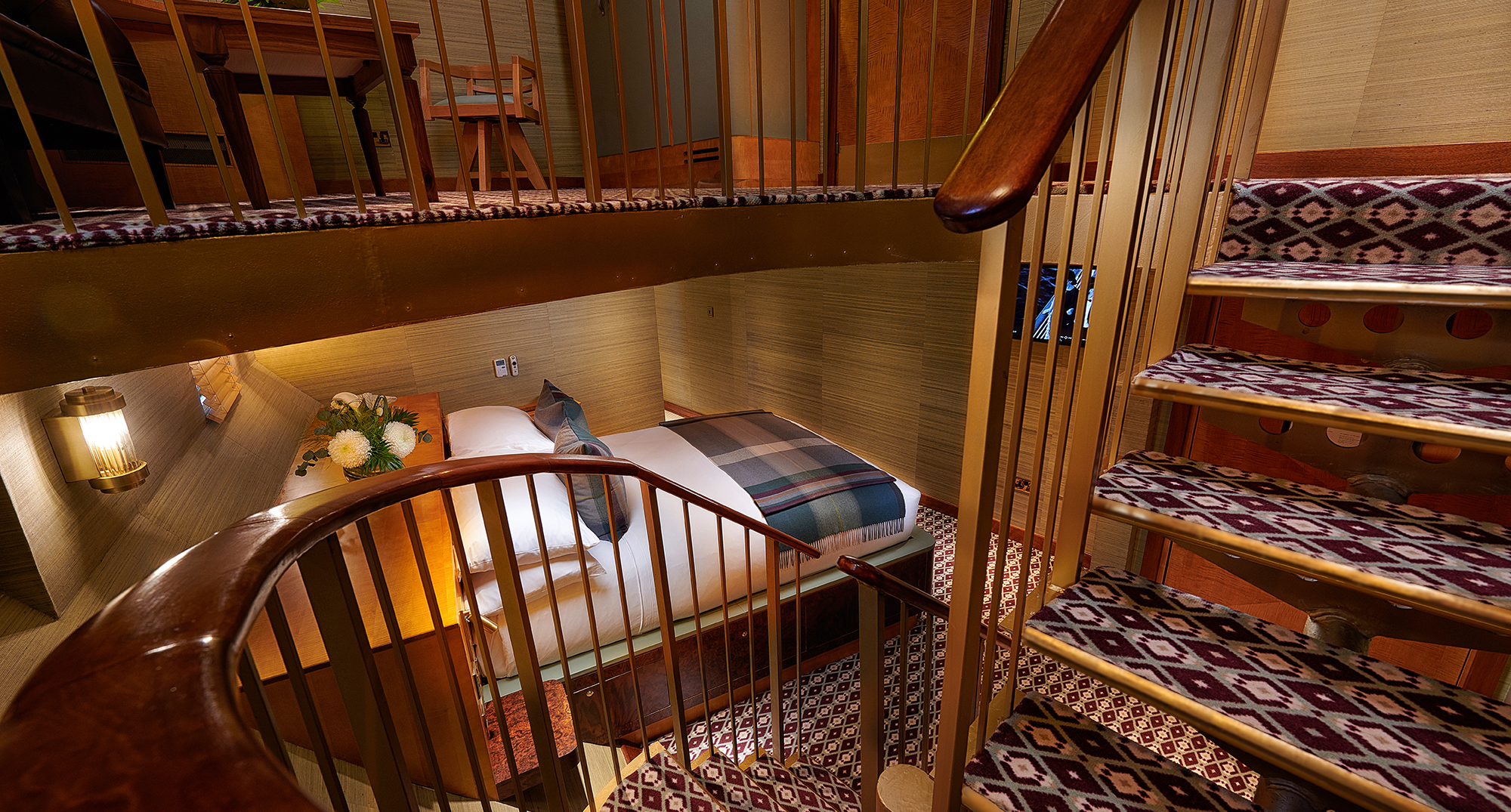 Sumptuous heritage fabrics created by Scottish textile designer Araminta Campbell tell Fingal Hotel's story. The purple heather of the Scottish mountain landscape, a bright light casting the warm glow of the lighthouse beam, guarding ships safely away from the rocky shores.