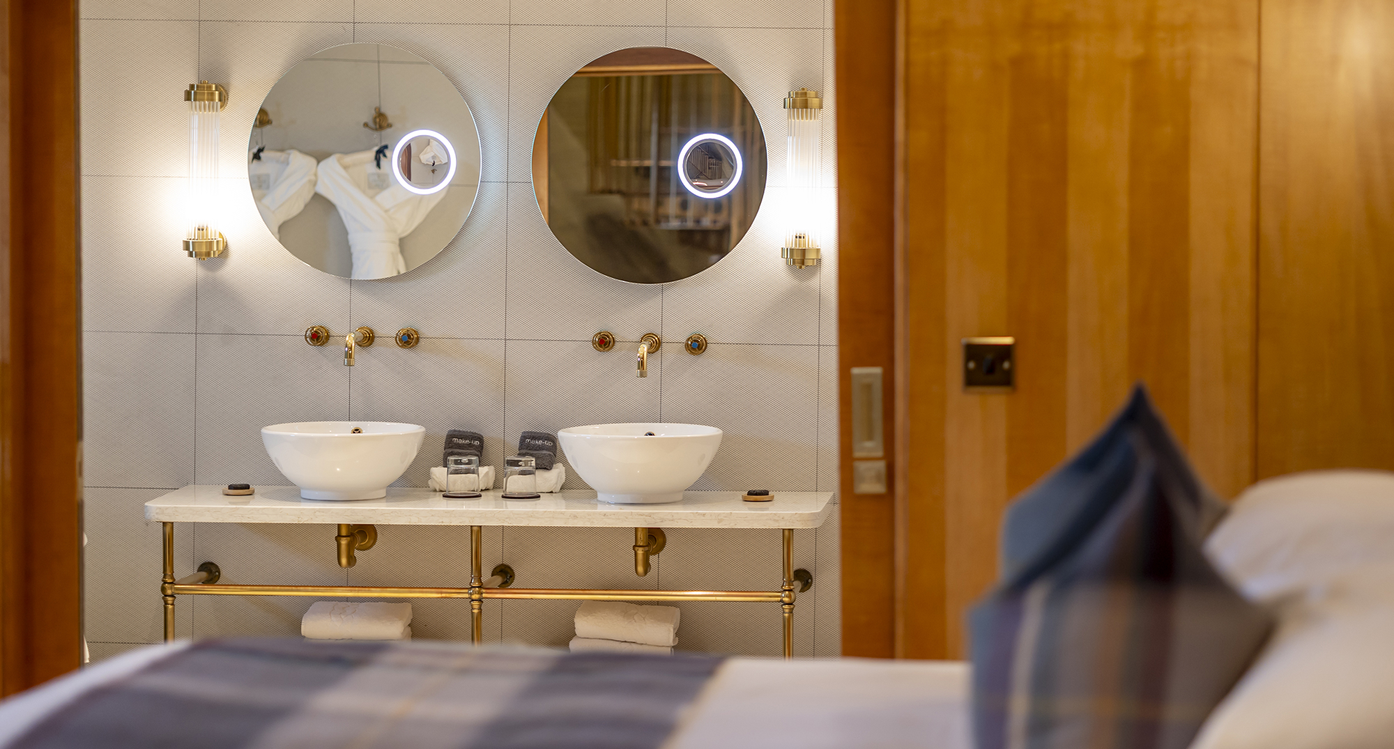 Sumptuous heritage fabrics created by Scottish textile designer Araminta Campbell tell Fingal Hotel's story. The purple heather of the Scottish mountain landscape, a bright light casting the warm glow of the lighthouse beam, guarding ships safely away from the rocky shores.
